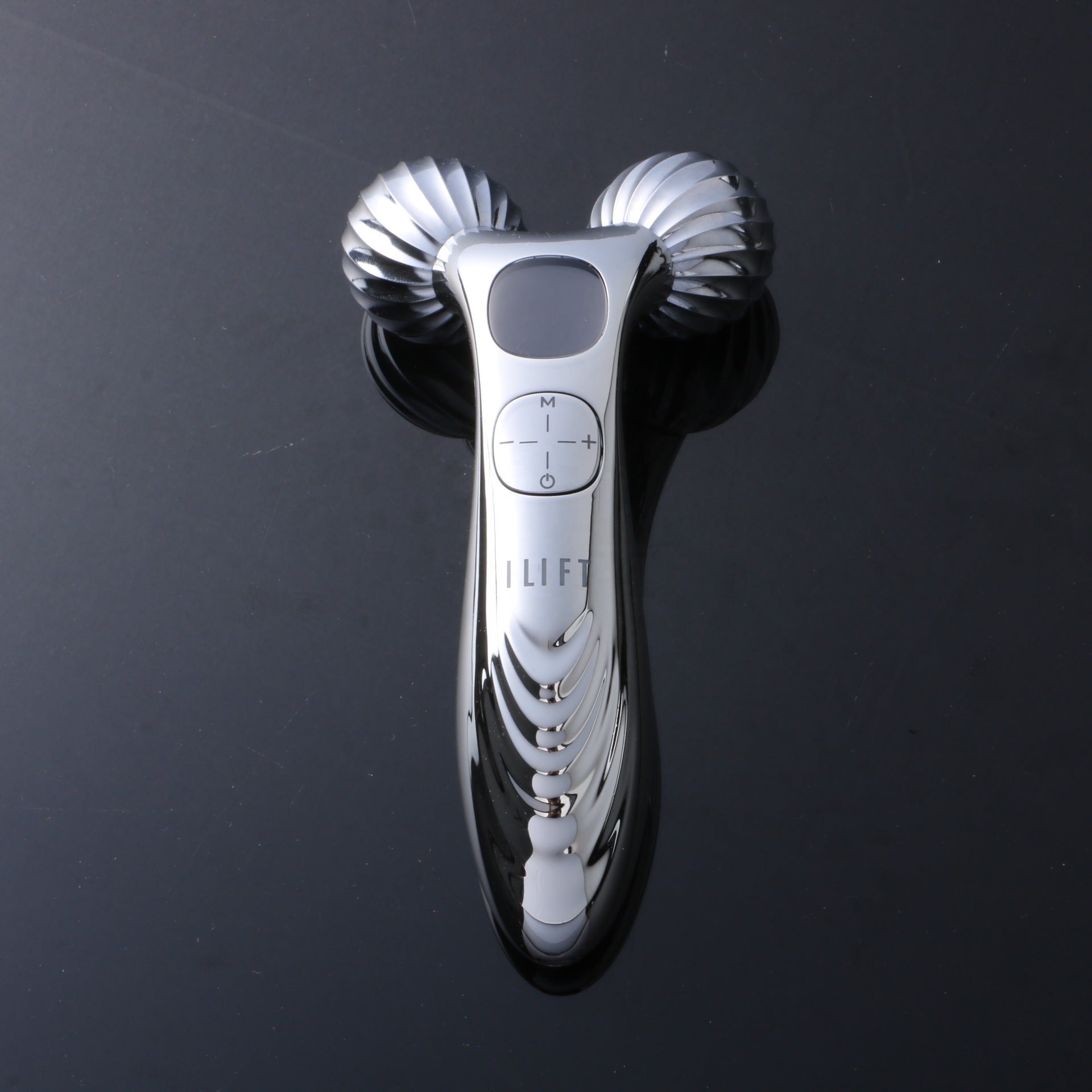 - Rolling massage heads that glide along the face, jawline, and neck