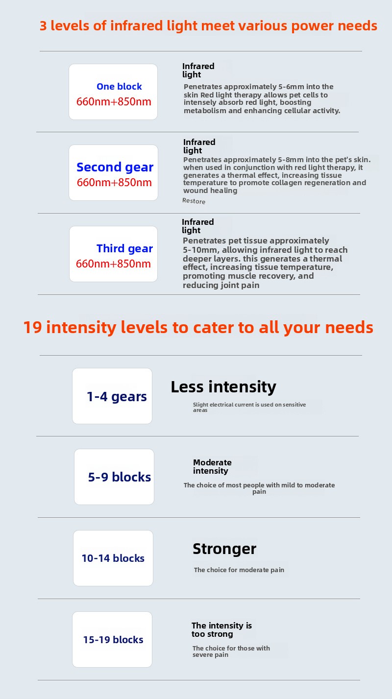 Red Light Therapy: Uses far red light technology for effective pain relief and tissue repair